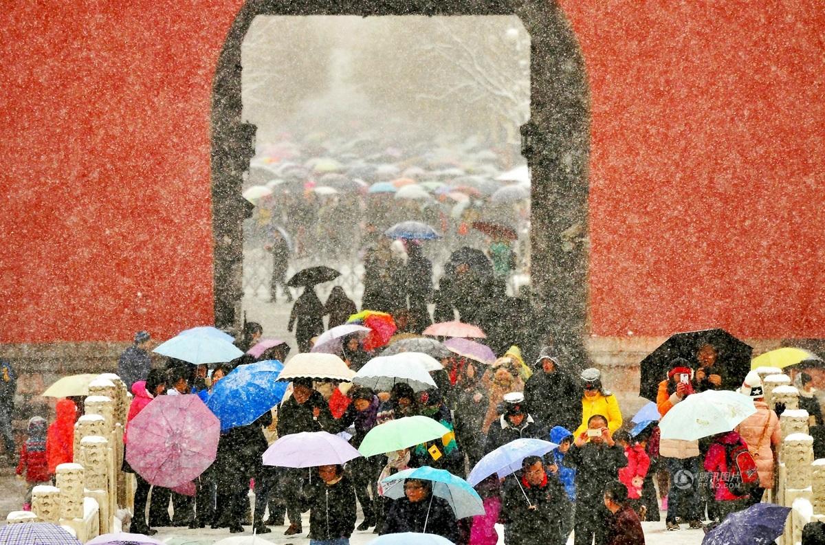 11月22日,北京,瑞雪罩京城,紫禁城现游客潮。