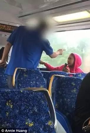 蓝衣男刚开始强忍住愤怒并没有回应,只是继续静静得在位置上坐着,没想到,红衣女居然得寸进尺,她又朝蓝衣男子喊道:“你会不会讲英语啊!滚回你的国家去!快滚快滚!”这时蓝衣男子被彻底激怒!他站起来朝她走进一步,用手指指着她回骂,并作势要打她!