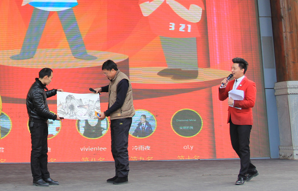 武当书画家唐华明先生为获奖观众赠送墨宝