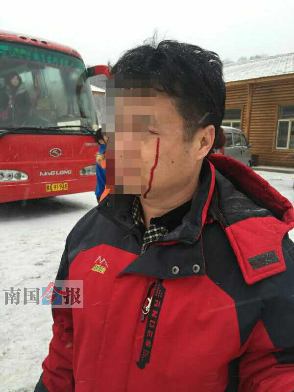 柳州王先生在哈尔滨旅游时被导游打伤。图由采访者提供