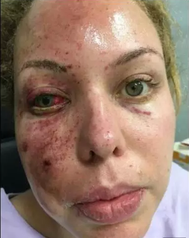 警察表示:怀疑Felicia和男票涉嫌毒品交易,并且认为Felicia非法持有武器。这帮警察不光就这么冲进来了,还带来了一颗手榴弹,那颗手榴弹不光带了,还点了炸了,然后Felicia的脸就成了现在这幅样子!