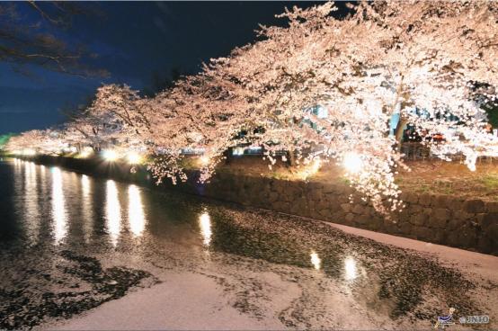 正值樱花绽放时节,走在松本城的本丸庭园和护城河边,会看到300株染井吉野及垂枝樱树被灯光照耀的梦幻景象,这就是松本城的“夜樱花”。
