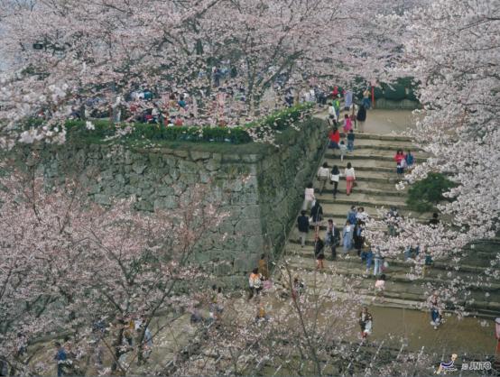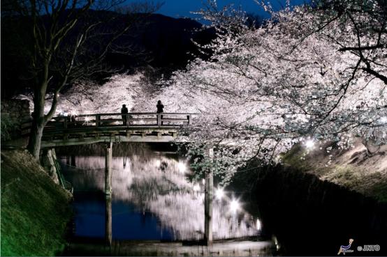 这里种植了1000多株樱花树,是日本西部数一数二的赏樱名地。站在城楼上放眼看去,樱花就像一片粉红色的大海。特别是夜晚,还可赏到被纸罩烛灯照亮的夜樱和石墙。