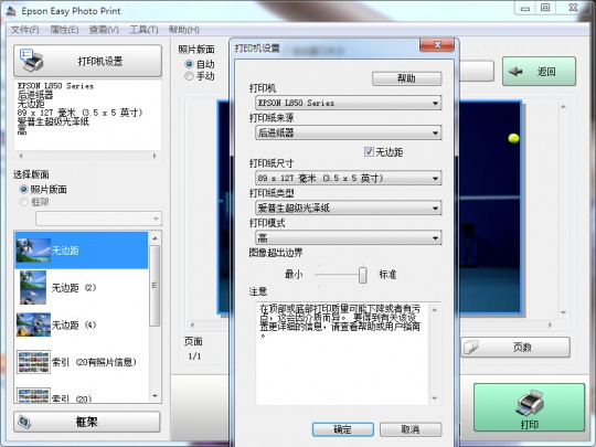 传统的电脑连接是最常用的。L850配备了一个专用软件“EasyPhotoPrint”,这个软件用来调整图像质量,打印参数等等。还可以进行照片预览,非常直观易用。