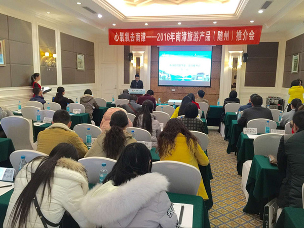 为进一步宣传“心氧氧 去南漳”的品牌形象,加大旅游推广力度和区域合作交流,3月10日,由南漳县旅游局主办的2016年南漳旅游产品春季推介会首站在随州市碧桂园凤凰大酒店隆重登场,南漳县县委常委、政法委书记李恒、随州市外事侨务旅游局副局长聂忠义等出席会议并致辞。两地旅游局、各重点景区、旅行社负责人以及多家新闻媒体记者出席、参加了推介会。