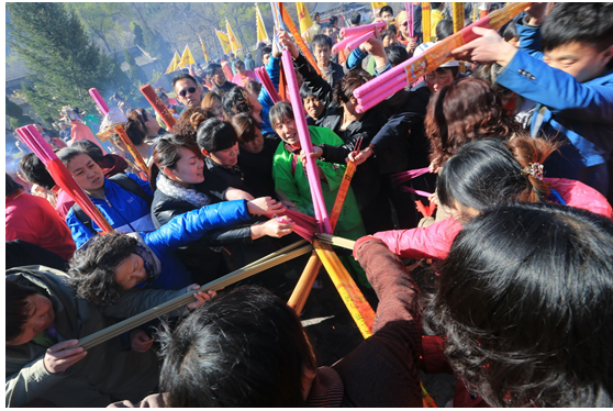 而从三月初一开始,各地零散香客也陆续云集娲皇宫,祈禳还愿,包括求福、求寿、求财、求前程、求子、求平安、求康健等。等愿望达成之后,带上祭品,香纸、鞭炮等,再前来娲皇宫拜谒娲皇圣母。