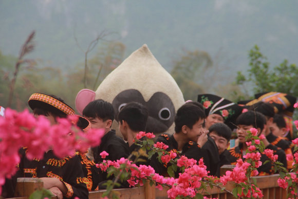 此次三月三汇聚了来自五湖四海的朋友,大街小巷到处都是外出过节的人们,熙熙攘攘的人群更增节日热闹喜庆的气氛。作为东道主的小白走在路上看着大家欢乐的笑脸心里也乐开了花,只是人家的吉祥物都跟人合影、打招呼,而小白因为游客太热情,被挤得“不成猴形”……
