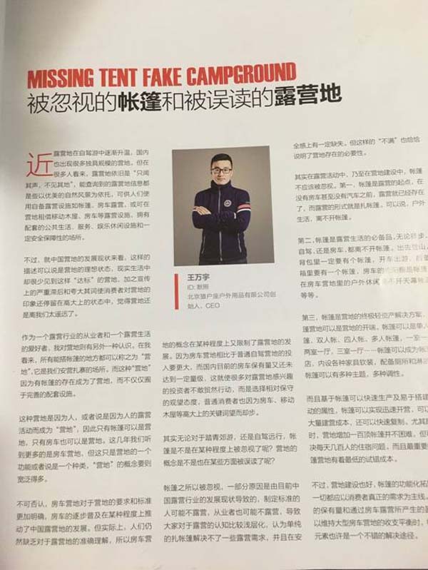 近日,猎户座CEO默照接受了房车与露营杂志的专访,以帐篷和营地的被需求视角浅谈了露营地发展的现状和未来。