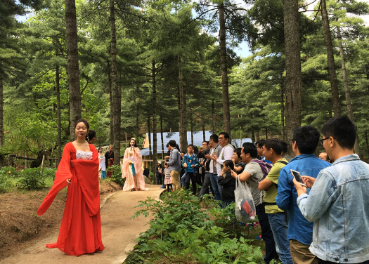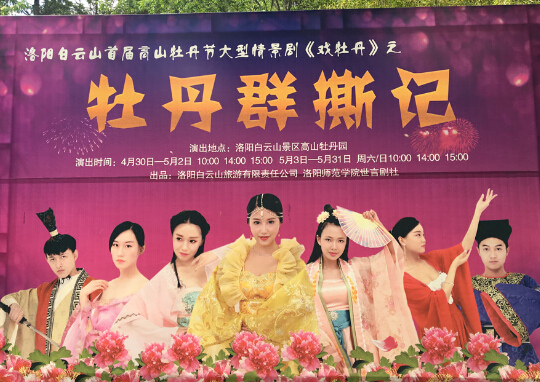 5月28日下午,由洛阳师范学院学生扮演的四大美女昭君、貂蝉、西施和杨玉环,极品美女赵飞燕齐聚白云山高山牡丹园,一场神仙凡人大PK、美女群撕穿越、诙谐搞笑夺魁大戏闪亮登场,为现代表演输入传统元素的“血液”。花千芳老师表示,“白云山美得令人窒息,还能看到这么诙谐的情景剧,真是不虚此行。”