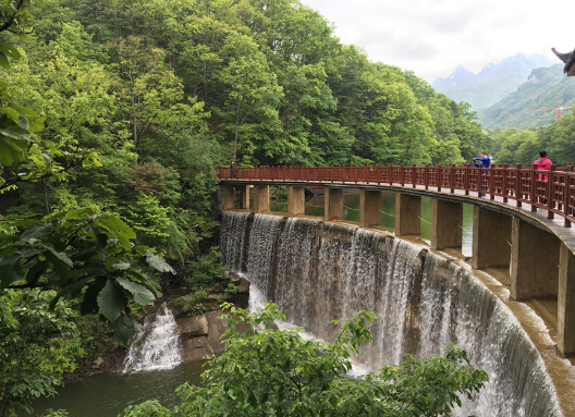 于白云湖驻足,碧波荡漾,风景如画。白云湖湖长500米,最大蓄水量达12万立方米,专用于调节下游瀑布用水。在湖上乘船游玩,清风徐来,蓝天白云搭配青山绿水,洗去一身疲惫,怎一个心旷神怡了得。白云湖旁边,是千年古刹留侯祠,相传是汉代刘邦的谋臣张良的隐居之地。张良隐居于此,白天踏云雾采药材,晚间开炉炼丹,整理各类兵书,别有一番仙家乐趣。