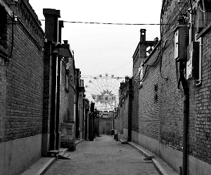 网友拍摄的从平遥古城胡同内看到的摩天轮。