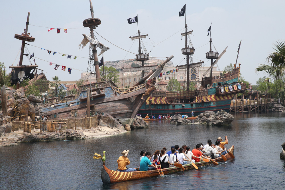 游客在上海迪士尼乐园宝藏湾内体验“探险家独木舟” 图片来源:新华社