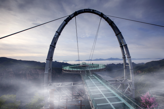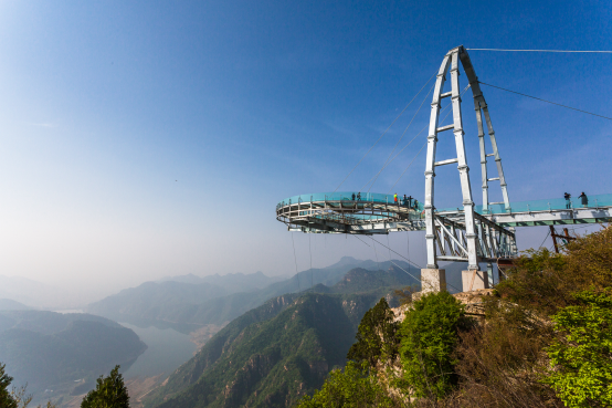 非常值得一提的是,到了石林峡必去的一个景点,即世界最大玻璃观景台——钛合金玻璃观景台。已于今年5月份开放,其悬挑长度达到32.8米,载员面积为415平米,距崖底约400米。登上世界最大玻璃观景台,来点小刺激,在轻松愉悦的石林峡之旅中,不失为一件乐事。