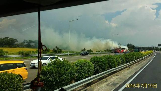 今天中午12时57分,台湾桃园机场联络道发生自撞车祸。一辆游览车因不明原因撞上护栏,整辆车随即起火燃烧,火势在13点21分扑灭。