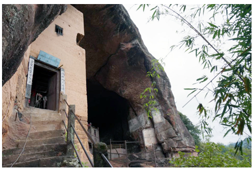 洞内有古刹明月寺,始建于南宋年间,常年香火缭绕,木鱼声声。洞内壁画、诗词依稀可辩。而在明末清初历经战乱后,近乎废弃。现在这里正在重新修缮。