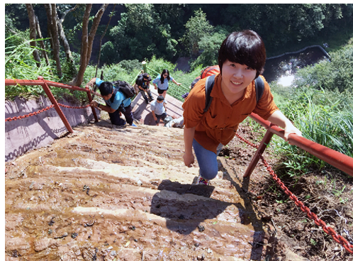 欲见神仙,必先修炼。山中近乎垂直的石阶仿佛是专为了考验来人对信仰和美景的执着。上下山途中分别有两段80°左右的石梯,必须手脚并用才能攀爬。五体投地,方显虔诚啊!