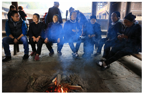 都说侗族建筑有“三宝”:鼓楼、凉亭、风雨桥。鼓楼在侗族叫做“堂瓦”,是公共场所的意思。鼓楼是侗民族聚会、议事、休息和娱乐的场所。夏日遮阴纳凉,冬季围炉取暖,氛围其乐融融,真可谓是侗家儿女安放精神之所。鼓楼里游客和本地人间次而坐,谈天唱歌,毫无违和之感。