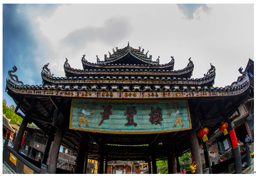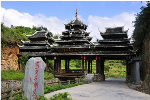 风雨桥又称花桥,亦叫福桥,芋头古侗寨入口处的“迴龙桥”是典型的风雨桥建筑,桥梁由巨大的石礅、木结构的桥身、长廊和亭阁组合而成。除石墩外,全部为木结构,由卯榫连接,结构严密,即使历经千秋万代也岿然屹立,可谓流芳百世的建筑瑰宝。