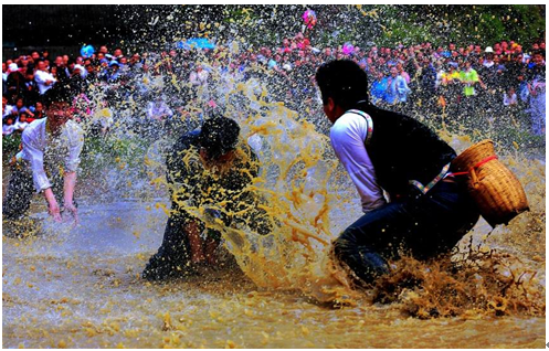 “抢鱼塘”是一项妙趣横生、具有浓郁民族特色的体育活动,男女都可以参加,规则简单粗暴:就是抢!抢到就可以回家加餐咯!