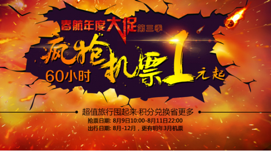 1、本次促销出行日期包含暑假末期、中秋、国庆等假期,对于放暑假的学生还没有有出去玩的,借开学前的时间抢个票抓紧玩下吧,不过对于中秋和国庆假期,按规律而言本次促销放出的票不会太多,如果大家到时能够搜索到心仪机票,可以毫不犹豫下手。