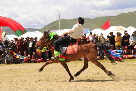 现场观看表演的游客不时发出热烈的呼哨声为骑手加油助威,火热的气氛感染了在场的所有人。整个马术表演为三节活动增添了无比的光彩,现场充满着热烈、吉祥、欢乐的浓浓气氛。来自广东的游客周女士表示:“这样的表演实在是难得一见,我能够感受到非常热烈的节日氛围。能够亲眼见到藏族人民精湛的骑术表演,我的这次旅程收获颇丰。有机会一定要带亲朋好友也来感受一下草原三节的盛况!”