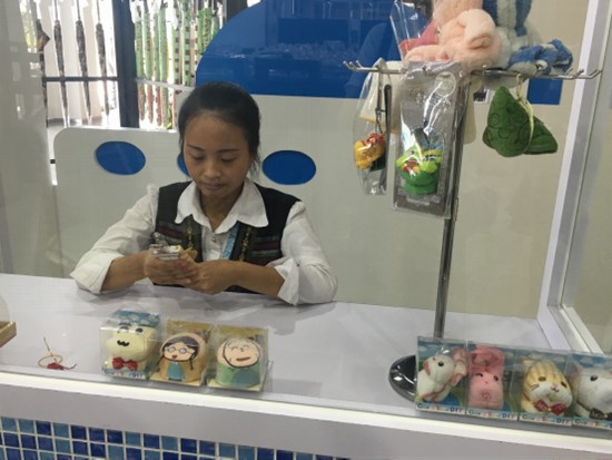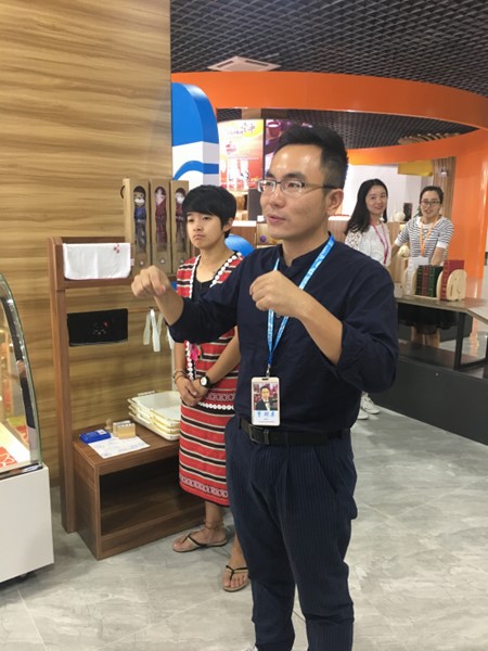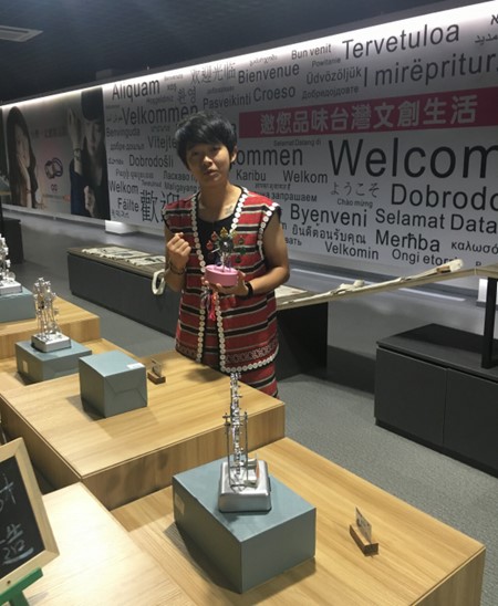 台中云林的iicake蛋糕毛巾,让你蛋糕、毛巾傻傻分不清楚;你当废品卖的纸箱、牛皮纸,在纸箱王的手里变身成为大象、骏马、包包、帽子甚至是能够承重200斤的小板凳;不要的袜子,乐活袜厂经过缝制加工,成为萌乖可爱的公仔玩偶;每天要吃的盐巴在夕游出张所是披上366种能量色彩,是能给人带来幸运的护身好物;前一秒还是一把“散沙”,“砰”的一声,一块酥脆可口的安平鲜爆虾饼就出现了…..来自台湾苗栗的高山族人莊雍甯穿着他们的特色服装,就像认识很久的邻家妹妹,笑呵呵地向游客一一介绍,在这里不仅是商品能让你体验到真正的台湾味,就连向导都会让人感觉到确实很"台湾"。莊雍甯平时不叫这个名字,她自我介绍时都说"我叫油腻"。在这里有数十位台湾人,他们都不用正名,都是一些对我们来说很意想不到的外号。不过在他们看来,叫外号,尤其是一些"很接地气"的外号会让他人觉得亲切,而他们享受着这种"似乎已经很熟"的感觉。