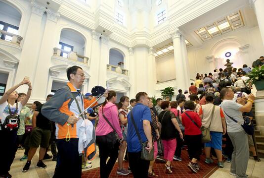 据台湾《联合报》报道,520政党轮替后,蔡英文办公室首次开放参观,今日(18日)一早就有许多民众排队等候。据悉,现场安排民众在背板贴上祝福的金色贴纸,有陆客写上"九二共识"表祝福。
