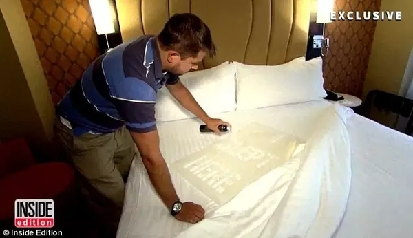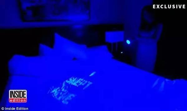 实验人员在万豪集团位于曼哈顿的ResidenceInn酒店床单背面,喷上了这种看不见的特殊荧光剂,留下“我睡在这里”的标记。