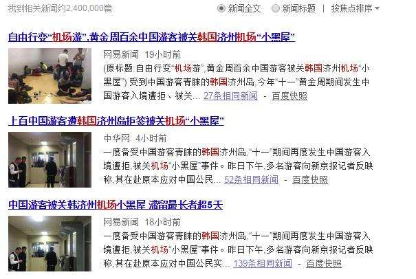 新闻说,在国庆期间,韩国济州岛发生中国游客被“同被扣留”的游客人数逾百,还关进了“小黑屋”。
