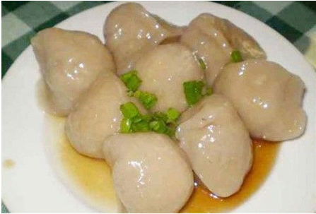 福州鱼丸选用鳗鱼、鲨鱼或淡水鱼剁茸,加甘薯粉搅拌均匀,裹进调好味的猪瘦肉或虾等馅,舀成丸状即成。福州鱼丸口感好,筋力佳,久煮不变质,松涨率好,色泽洁白玲珑晶亮,质嫩滑润清脆,富有弹性,味道鲜美,具有特殊的海鲜风味。食用时加点白醋和胡椒粉,福州味儿就更足啦!