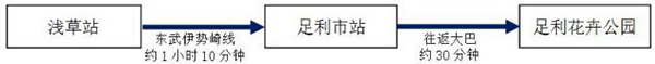 东武伊势崎线“足利市站”(从浅草站出发约1小时10分钟)-往返大巴(约30分钟)