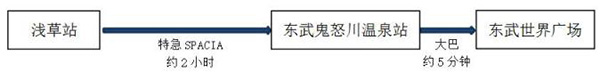 东武鬼怒川线“东武鬼怒川温泉站”(从浅草站出发约2小时)-大巴(约5分钟)