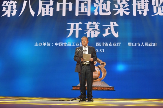 在开幕式上,眉山市委副书记、市长罗佳明向所有到场嘉宾介绍了发展中的眉山经济和眉山泡菜业。作为著名的“中国泡菜之乡”,眉山市以打造“东坡味道”千亿产业为目标,以“中国泡菜城”建设为重点,坚持一、二、三产融合互动,强力推进“东坡泡菜”产业加快发展。罗佳明市长表示,眉山将以此次泡菜博览会为契机,与国内外同行业的企业、专家携起手来,进一步加强交流合作,共谋发展,互利共赢,为泡菜产业发扬光大,走出中国,走向世界,作出积极贡献。