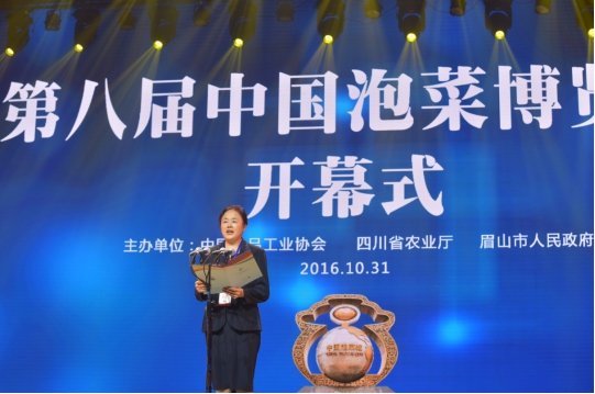 与此同时,农业部原党组成员、中国农产品市场协会会长张玉香发表致辞,对隆重开幕的第八届中国泡菜博览会表示祝贺。在致辞中,张玉香会长对“四川泡菜”千年工艺传承和文化积淀后形成的独特风味表示赞赏,对眉山市在泡菜产业取得的突出成就表示肯定。她认为,眉山市深度挖掘泡菜产业资源,几年间获得了多项全国第一,形成了多个中国驰名商标,有力地促进了农民增收和社会就业,繁荣了地方经济。今后,农业部将一如既往地支持蔬菜和泡菜产业发展。