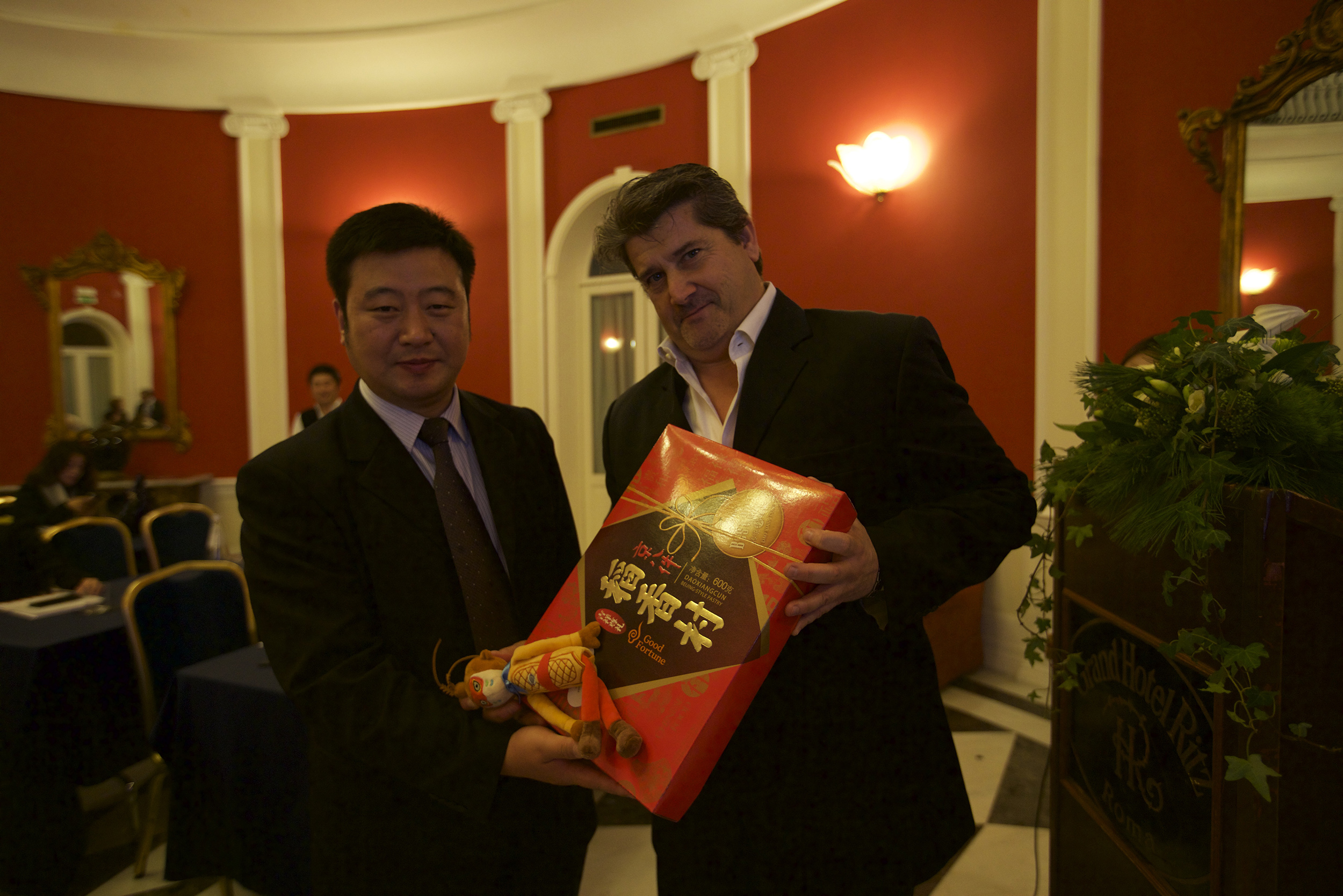 与意大利国家旅游局代表互赠礼品