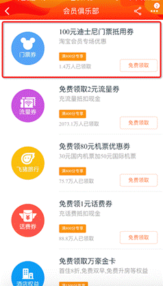 除此之外,记者还发现,在手机淘宝的“我的淘宝”权益中,淘气值超过800分的消费者还可以免费领取100元的门票抵用券,也可以用于上海迪士尼门票的购买直减。