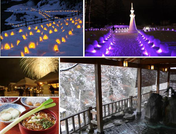 “奥日光汤元温泉冰雪祭”将上演一场丰富的冰雪庆典。位于温泉街主会场中心的汤元园地,迷你雪洞中点燃星星灯火,营造浪漫的“雪灯里”活动,一只只蜡烛在500个约40cm高的迷你雪洞中点燃,打造出冰雪与烛光交织的梦幻世界。美妙的景致还被评为日本夜景遗产“灯光夜景遗产”。