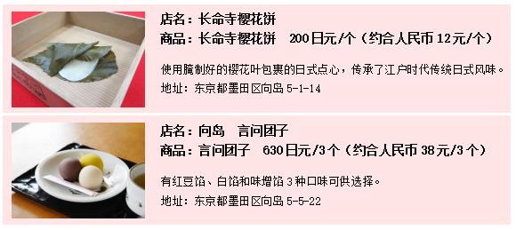 每逢樱花盛开之时,众多小吃摊档云集于此,游客可一边赏樱一边品尝美食。使用腌制的樱花叶精心制作的“樱花饼”、令人满口甜香的日式点心“言问团子”等,日本人赏樱时的必备美食一定不能错过。