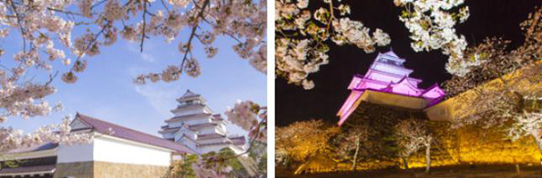 在日本东北地区第一名城“鹤城”的周围生长着约1000株樱花。这里也是百所赏樱胜地之一,一到春天,怒放的樱花与天守阁相映成趣,美不胜收。入夜时分,倒映在水面上的夜樱与鹤城一起勾勒出梦幻般的画卷,会有一种身临其境的穿越感。
