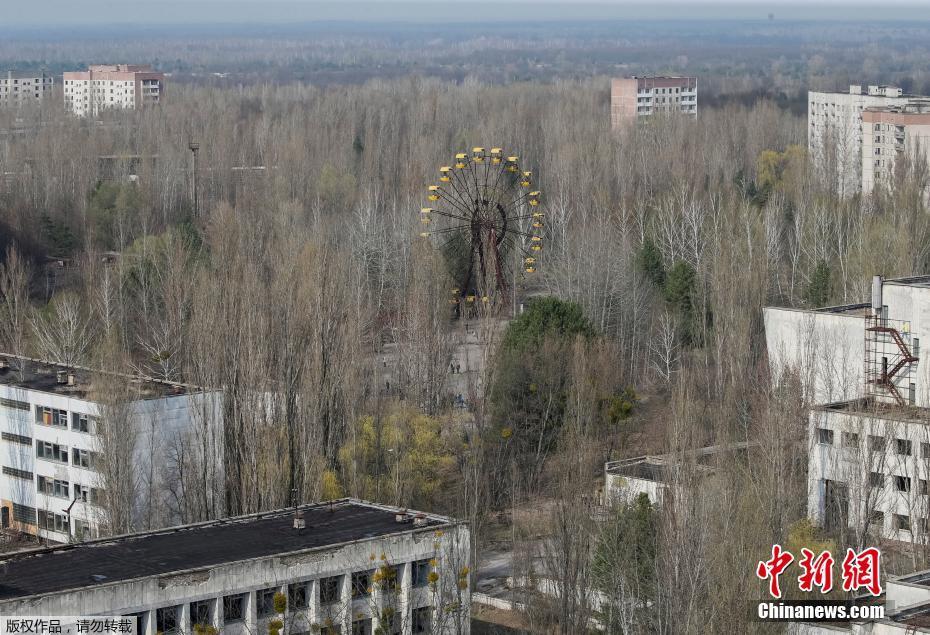 巨型拱门与荒凉的普里皮亚季城。据乌克兰媒体称,这个拱门设计使用寿命达到100年。