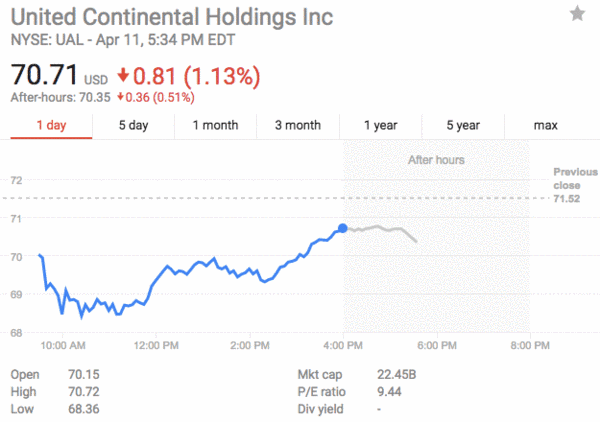 在视频在互联网上疯狂转播后,美联航股价并没有即刻下跌。周一,美联航股价攀升近1%。而在美联航管理层对事情进行回应后,公众再度被激怒。