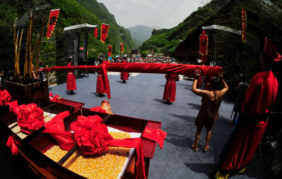 开幕式上的纤夫祭拜仪式现场 张晓峰摄