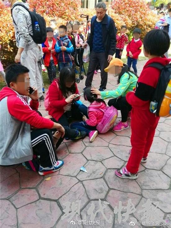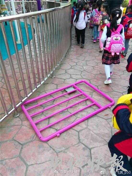 据周先生描述,护栏在掉落时并没有直接砸到现场人群,而是在落地弹起后擦伤了两名儿童,另外有几个孩子受到惊吓也躺在了地上,“其中一名女孩的伤较为明显,可以看到前额上有肿包但未见流血”。