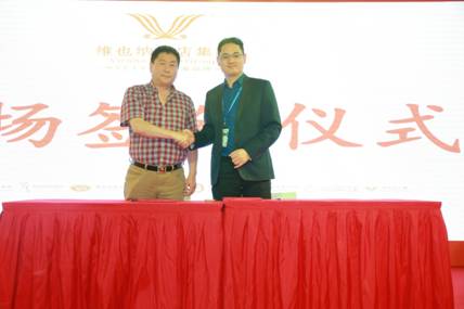 维也纳酒店集团大客户开发部总裁黄慧星先生(右)与河北保定定州市火车站店业主(左)签约仪式