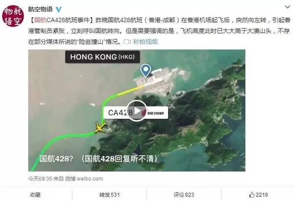此次事件有多凶险?民航自媒体“航空物语”表示,国航航班在香港机场起飞后,突然向左转,引起香港管制员紧张,立刻呼叫国航转向。但飞机高度此时已大大高于大澳山头,不存在部分媒体所说的“险些撞山”情况。