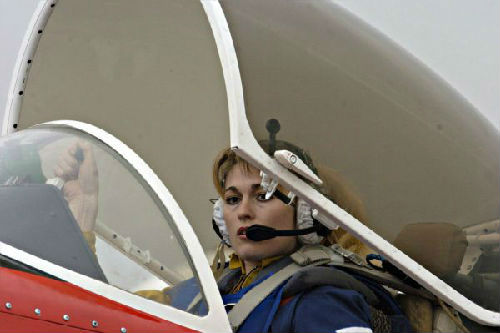 资料图片:俄罗斯女飞行员张家界成功试飞。