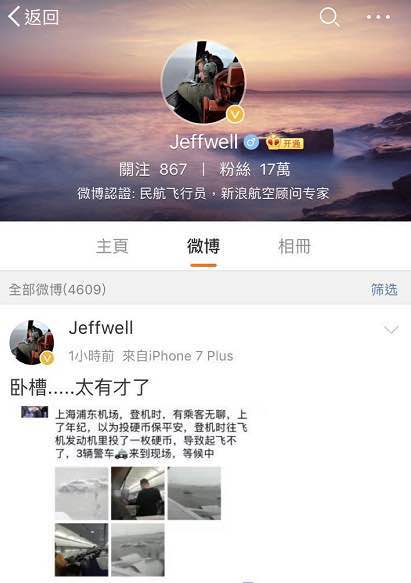 今天(6月27日)下午,在浦东国际机场飞广州白云机场的南方航空cz380次航班,因一名乘客在登机前往发动机内投掷硬币,导致飞机延误,全体乘客下机等待。