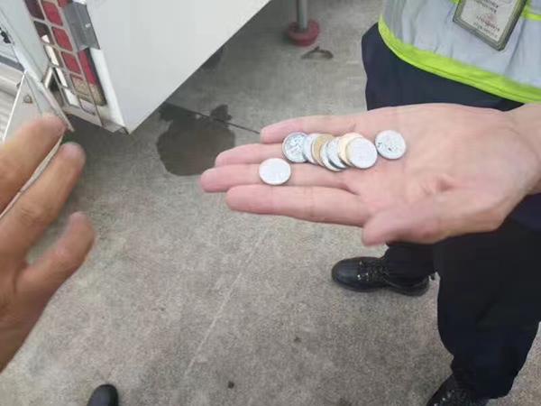 图说:机务人员检修发动机后共发现9枚硬币。网友供图