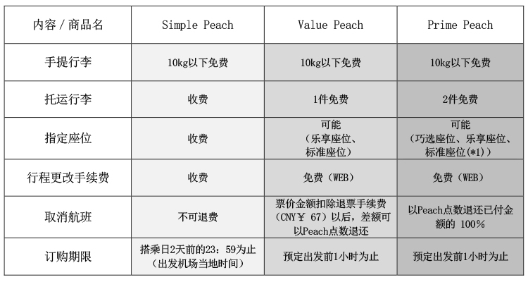 ・ 新票价的名称分别为:「Simple Peach」、「Value Peach」、「Prime Peach」