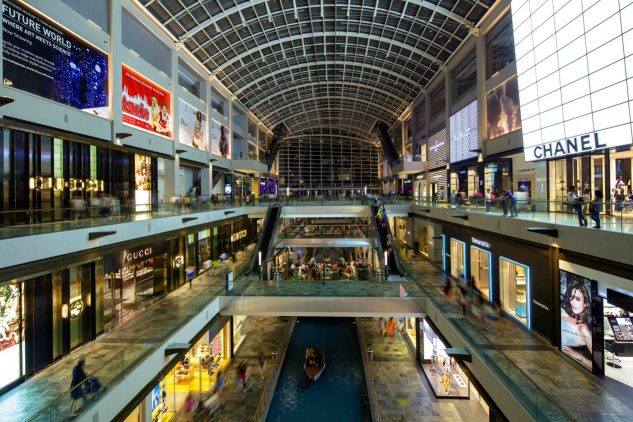 此外,商场地下一层还有一条模仿意大利威尼斯的运河,两岸林立着各种餐馆和品牌店,游客可以选择乘坐工艺精美的小舟穿行于购物区之间,为购物体验增添休闲惬意的气息。